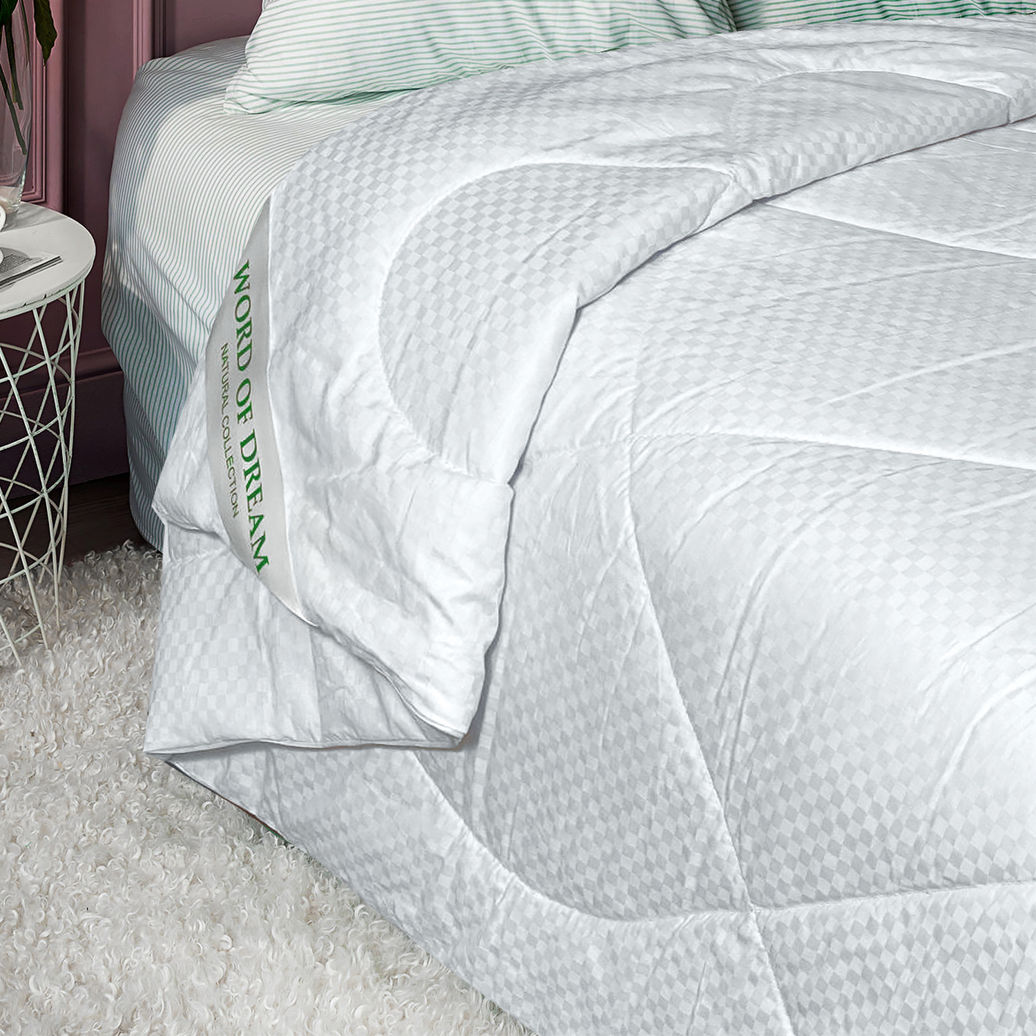 Капкова ковдра ЛЕГКА Word of Dream це ідеальне рішення на літо та в теплі кімнати. Ковдра легенька, тоненька і затишна. Вона захистить вас від нічної прохолоди, але при цьому під нею ніколи не буде жарко. Вона забезпечить комфортний сон і повноцінний відпочинок. Чохол ковдри пошитий із високоякісного білого жаккарду із малюнком “шахмати” chess (100% бавовна, преміум клас), прикрашений елегантним кантом у тон. Тканина чохла м’яка і легенька, і одночасно з цим міцна і довговічна. Зовнішній вигляд ковдри не зміниться навіть через багато років експлуатації.