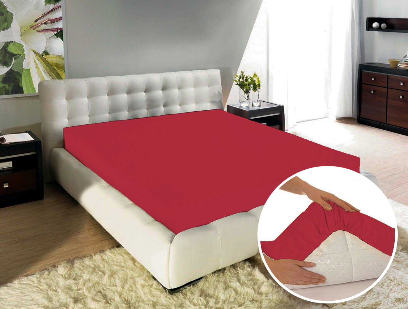Цвет простыни – red bordo. Выполнена из египетского 100% хлопка (сатин).